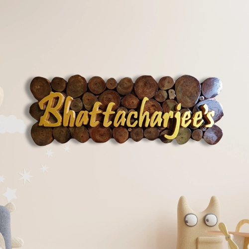 Bring a touch of nature to your home’s entrance with this striking handcrafted nameplate, made from original teak wood. Featuring an organic cut-log base with individually polished wood slices, this piece is a true celebration of natural textures and artisan craftsmanship.